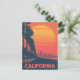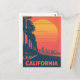 Send a piece of the Golden State with this retro-style postcard. It features a vibrant illustration of a classic California scene, with a road lined with palm trees leading toward a city skyline at sunset. This postcard is perfect for sharing the sunny vibes of California with friends and family, as a memento of a trip, or as a small art print for your home. The vintage design adds a cool, nostalgic touch that's sure to be loved.