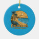 A vintage-style California beach scene featuring a warm orange sunset, blue ocean waves, and tropical palm trees inside a circular frame. The textured gold “California” lettering adds a classic retro feel, perfect for anyone who loves coastal vibes and iconic beach aesthetics. A stylish and relaxing design inspired by timeless West Coast scenery.