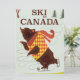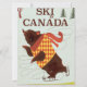 Ski in Canada cartoon bear vintage or retro vacation poster. Brown bear cartoon travel poster