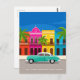Retro Car and Colourful Colonial Buildings Cuba Postcard