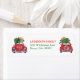 A little red retro car is loaded with a Christmas tree and gift packages on this cute return address label. On the left side, the car is coming toward the viewer, and on the right side it is going away. Your custom text is in matching red and green at the center. Cute!