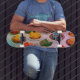 Fun carnival frogs feature on this retro inspired scate board.