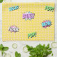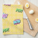 Retro and fun Kitchen Towel with cartoon inspired design in pastel pink, blue and yellow, perfect to use for bakers, pastry chefs or anyone who enjoys cooking as a finishing touch in your workspace. Featuring nostalgic pop art graphics and vibrant colours with space for your custom name or bakery logo. Use this kitchen towel for your bakery or as a gift to a loved one. All text is fully editable so you could change all words to anything you like!