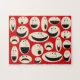 Face the facts. This Retro Cartoon Faces Pattern Puzzle is cute—not to mention happy, sad, shocked, and surprised! Do you remember loving the minimalist cartoons of the 1950? Yeah, well, we weren’t around then, either. But this pattern is still all kinds of kitschy! The dramatic mouths, pointed noses, and understated black eyes on these expressive, cream-coloured, emoji faces are reminiscent of vintage, mid-century modern, cartoon drawings. Hair? These whimsical floating heads don’t need no stinkin’ hair! The vibrant, red background does accentuate their round and oval shaped noggins nicely, though. Whatever mood you’re in, this fanciful design is sure to strike your fancy.