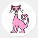 A retro style pussy cat in pink, with a diamond studded golden collar. An original drawing by Nicolette Amanda Berry.