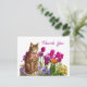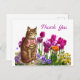 Retro Cat in Tulip Garden Thank You Postcard
