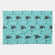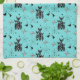 A super cute pattern of kitty cats, atomic starbursts and abstract shapes inspired by retro mid century designs in tones of turquoise blue, black and white..