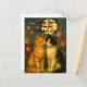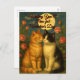 Retro vintage style image of two cats in love in a rose garden under a full moon. You can personalize the text with this template.