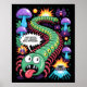 Transform your space with this explosive retro 1980s arcade pixel art wall art inspired by the classic Atari Centipede game! A massive twisting green centipede with goofy derpy eyes and tongue out leads the charge through a mushroom garden chaos, surrounded by jumping spiders, epic explosions, laser blasts from the blaster ship, and the hilarious speech bubble: “Centipede: Leg-endary Bug Invasion!” Vibrant neon colors, glowing details, and pure 8-bit nostalgia make this the ultimate tribute to vintage gaming. Perfect for game rooms, man caves, offices, or any retro enthusiast's wall – relive the arcade glory every day!
