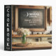 Add a name and more to personalize this charming cookbook with a chalkboard, vintage mason jar, wood utensils and a daisy. Artwork by Amelia Carrie.
