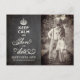 Ivory white keep calm curly script text on a retro black chalkboard background. Whimsical, elegant and funny photo save the date announcement postcard.