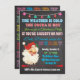 Invitation vos vilains ou amis à cette fête de Noël géniale avec une clause de Père Noël vintage, des ornements suspendus, une typographie amusante sur un arrière - plan de tableau noir. Alors mangez, buvez et soyez Joyeux avec l'invitation stupéfiante.