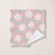 Enhance your bathroom decor with a custom-made bath towel set. Retro Chamomile Flower Pattern 60s Pink Teal Design Pattern Bathroom Towel Set. Great home decor gift idea.
