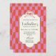 Bright, colorful and fun, this hand drawn dinner party Valentine's Day dinner party invitation features a bold pink and red checkerboard pattern with a handdrawn frame embellished with a red bow. The simple stylish text template is easy to personalize with your event info. For your convenience, these invitations may be ordered as printed invitation for mailing or as a paperless digital download for sending out electronically.