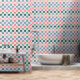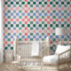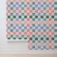 Checkered wallpaper in shades of greyish-white, pink, green, and blue. Plaid wallpaper perfect for girly spaces, baby girl nurseries, feminine bathroom walls, and pink room wallpaper.
