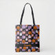 Retro Chequerboard Halloween Ghosts and Pumpkins Tote Bag