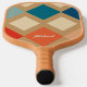 This retro pickleball paddle design features a chequered background with beige, blue and orange diamonds, with your name in bold script text for a look that is simple and stylish, yet professional. Makes an excellent gift for Christmas, birthday, Father's Day, Grandparents' Day, graduation, and more.