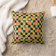 Retro Chequered Pattern Black and Green with flowe Throw Pillow