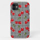 Retro design with red cherries on black and white gingham background. On home decor and gifts. PinkInkArt original!
