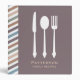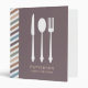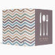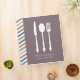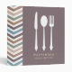A soft neutral colour scheme of dusty blue, plum, khaki, and olive, in a chevron zigzag pattern and crisp white silverware set of fork, knife and spoon - makes a beautiful binder for your treasured family recipes.