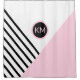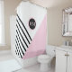 Redecorate your bathroom with a designer look using this personalized contemporary pop art geometric pattern with a retro chic vibe. This stylish designer shower curtain has angled black stripes and pink colour block positioned in an envelope style with a prominent matching round frame surrounding your monogram. Personalize with your desired monogram for a custom look that is uniquely you. Other matching bathroom and bedroom decor products are available in this design for a coordinated look.