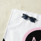 Hit the beach or pool with a stylish designer beach towel in a contemporary pop art geometric pattern with a retro feel. This custom design has angled black stripes and pink colour block with a prominent matching round frame surrounding your monogram. Personalize with your desired monogram for a unique beach towel that is uniquely you.