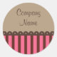 Candy coloured stripes and chocolate scallops give this business sticker retro style. Use these stickers for packaging, as envelope seals, etc....Use these pink and brown stickers for a bakery, boutique, shop, business, etc...Customize these stickers to suit your needs by changing the company name. The designs are from original art.