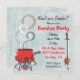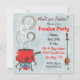 Retro fondue party invitation with a cool and modern feel. Bubbling and steaming pot of chocolate fondue and a skewer with a strawberry and dripping chocolate against a retro background. Great for all ages! Hand drawn illustration by McBooboo.