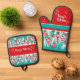 Retro Christmas Ornaments - Customizable Oven Mitt & Pot Holder Set