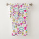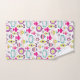Retro Christmas Ornaments Pattern Holiday Bathroom Towel Set. Washcloth, hand towel and body towel in fun retro holiday pattern. Pink, purple, green and blue ornaments on a white background. www.SamAnnDesigns.com