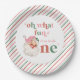 Retro Christmas pink Santa First Birthday Paper Plate