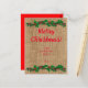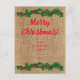Retro Christmas red typography burlap Postcard. Personalized text.