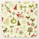 Retro Christmas Sketches Seamless Pattern Square Paper Coaster