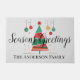 Retro style colourful Christmas tree with hanging ornaments top border. Customize with your own holiday greeting and name(s) or special message from your business or group.