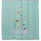 This teal Christmas Shower Curtain has a retro Christmas tree in the centre with retro ornaments and multi coloured starburst, all on a starburst and atomic teal background. Personalize the shower curtain with your own holiday message to brighten up your home decor for the Christmas season.