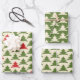 Retro Christmas Trees in Olive Green Red Cream Wrapping Paper Sheet