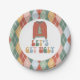 Retro Christmas Ugly Sweater party plates with christmas tree sweater and argyle back design.
