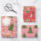 A set of wrapping paper with a retro Christmas pattern. A festive table with sweets and turkey and champagne.