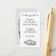 A custom reception card, event ticket, enclosure card or business card template with script and retro letters and vintage art of Cinderella's glass slipper on a pillow in black, white and grey.