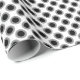 Retro dots with a contrasting border, based on a classic, Mid-Century Modern upholstery pattern - black dots bordered in medium grey / grey on a white background