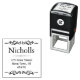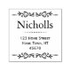 A retro classic personalized self-inking stamp design featuring traditional typographic ornaments and elegant name and return address text. Designed by Thisisnotme©