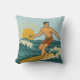Retro Coastal Cali Surfer | Reversible Surfboard Throw Pillow