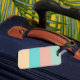 Fun vintage inspired big stripes design in green, apricot, aqua, and yellow.