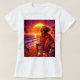 Bold retro cockapoo lifeguard t shirt featuring a stylish dog character on a vibrant sunset beach. Inspired by 80s aesthetics and coastal vibes, perfect for dog lovers who want a standout graphic tee.