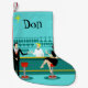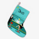 Every hour is happy hour with this Customizable Retro Cocktail Lounge Christmas Stocking. The mid century modern design features a vibrant, 1960's style, minimalist, cartoon drawing of a classy, cocktail bar. Against the backdrop of an aqua wall, we can see rows of drink glasses. At least we can see the teal silhouettes of drink glasses. Judging from the shapes of the stemware, this bar is well equipped to wet your whistle, whatever your drink preference. A most competent and personable bartender is manning the teal bar with yellow accents. The young barkeep is wearing a pristine, white shirt with black bow tie. His fresh-faced good looks, blonde hair and black hipster glasses give us every reason to believe that he either spends his days as a struggling actor or a superhero. In one hand, the handsome mixologist is handing a martini to a customer on the opposite side of the bar. The waiting customer is a broad-shouldered gentleman in a black suit and red tie. He's the sort of fellow who is described as tall, dark, and handsome even when it's still hours until closing time. There seems to be a red and chrome bar stool with Mr. Debonair's name on it. Yet, not to be presumptuous, he asks the question, "Pardon me. Is this seat taken?" He is asking the raven haired gal on the neighbouring bar stool. She's a real "girl next door" type, if you happen to live next door to a flawless beauty with a figure that won't quit. She is wearing a black dress and holding a martini in one hand. She's hoping that she and the approaching gentleman have more in common that their drink preference and choice of wardrobe colour. It looks like this evening just got interesting. Cheers to you! Personalize for a one of a kind holiday gift.