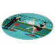 Every hour is happy hour with this Retro Cocktail Lounge Cutting Board. The mid century modern design features a vibrant, 1960's style, minimalist, cartoon drawing of a classy, cocktail bar. Against the backdrop of an aqua wall, we can see rows of drink glasses. At least we can see the teal silhouettes of drink glasses. Judging from the shapes of the stemware, this bar is well equipped to wet your whistle, whatever your drink preference. A most competent and personable bartender is manning the teal bar with yellow accents. The young barkeep is wearing a pristine, white shirt with black bow tie. His fresh-faced good looks, blonde hair and black hipster glasses give us every reason to believe that he either spends his days as a struggling actor or a superhero. In one hand, the handsome mixologist is handing a martini to a customer on the opposite side of the bar. The waiting customer is a broad-shouldered gentleman in a black suit and red tie. He's the sort of fellow who is described as tall, dark, and handsome even when it's still hours until closing time. There seems to be a red and chrome bar stool with Mr. Debonair's name on it. Yet, not to be presumptuous, he asks the question, "Pardon me. Is this seat taken?" He is asking the raven haired gal on the neighbouring bar stool. She's a real "girl next door" type, if you happen to live next door to a flawless beauty with a figure that won't quit. She is wearing a black dress and holding a martini in one hand. She's hoping that she and the approaching gentleman have more in common that their drink preference and choice of wardrobe colour. It looks like this evening just got interesting. Cheers to you!