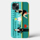 Toutes les heures est happy hour avec ce Retro Cocktail Lounge iPhone 6 Coque. Le design moderne du milieu du siècle présente un dessin animé minimaliste et animé de style années 1960 d'un bar à cocktails élégant. Sur fond de mur d'aqua, on peut voir des rangées de verres de boisson. Au moins, on peut voir les silhouettes turquoises des lunettes de boisson. A en juger par les formes de la tige, ce bar est bien équipé pour mouiller votre sifflet, quelle que soit votre préférence de boisson. Un barman des plus compétents et personnalisables est le bar turquoise aux accents jaunes. Le jeune bardonte porte une chemise blanche immaculée avec cravate arc noir. Son apparence fraîche, ses cheveux blonds et ses lunettes noires de hipster nous donnent toutes les raisons de croire qu'il passe ses journées en tant qu'acteur en difficulté ou en tant que super-héros. D'un côté, le beau mixologiste donne un martini à un client de l'autre côté du bar. Le client en attente est un gentleman à larges épaules en costume noir et cravate rouge. C'est le genre de gars qui est décrit comme grand, sombre et beau même quand il reste des heures jusqu'à la fermeture. Il semble y avoir un tabouret rouge et chrome avec le nom de M. Debonair dessus. Mais pour ne pas être présomptueux, il pose la question : "Pardonnez-moi. Est-ce que ce siège est pris ?" Il demande à la fille aux cheveux raven sur le tabouret du bar voisin. C'est une vraie "fille d'à côté", si vous vivez à côté d'une beauté impeccable avec un personnage qui ne démissionnera pas. Elle porte une robe noire et tient un martini d'une main. Elle espère qu'elle et l'homme approchant ont plus en commun que leur préférence pour la boisson et le choix de la couleur de l'armoire. On dirait que ce soir est devenu intéressant. Bravo !
