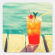 A Summer themed art photo of an orange sunset cocktail against a pool backdrop. Retro themed leisure party image. Vintage cocktails with a stylish feel.