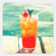 A Summer themed art photo of an orange sunset cocktail against a pool backdrop. Retro themed leisure party image. Vintage cocktails with a stylish feel.