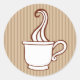 A steamy cup of coffee decorates these stylish stickers. The design is from original art.
